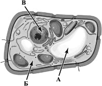 16.1. Ребята рассмотрели клетку листа с помощью микроскопа. Напишите названия структур, которые обозначены на рисунке буквами А–В.