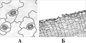 7.2. На рисунке представлены изображения кожицы (А) и пробки (Б).