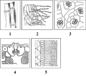 14.1. Найдите на рисунках 1–5 элементы тканей, которые обозначены буквой А.