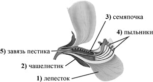 Из каких структур цветка, обозначенных на рисунке «Цветок» цифрами 1–5, развиваются части плода, обозначенные на рисунке «Плод» буквами А и Б?