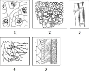 14.2. Какая ткань располагается на нижней стороне листа Василька синего? Найдите изображение этой ткани на рисунках 1–5 и запишите в ответе соответствующую цифру.