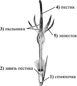 Части цветка: А) тычиночная нить Б) цветковые чешуи В) завязь