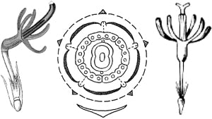 Если элементы цветка расположены кругами, то между количеством элементов в каждом круге ставится знак «+».