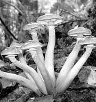 Рассмотрите изображения шести представителей мира грибов. Предложите основание, согласно которому эти грибы можно разделить на две группы – по три представителя в каждой.