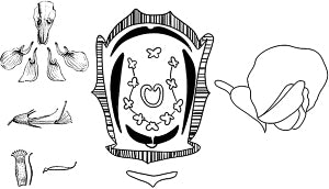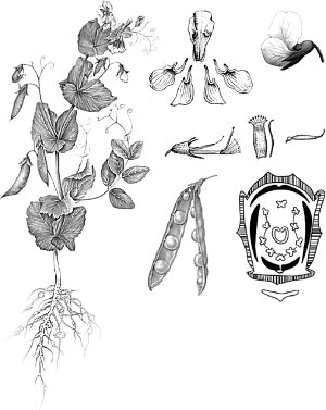 На рисунке изображены цветок Гороха посевного и его отдельные элементы.