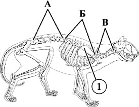 13.1. Рассмотрите рисунок. К какому поясу относится кость скелета кошки, обозначенная на рисунке цифрой 1?