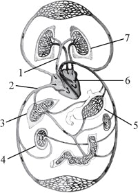 Установите соответствие между характеристиками и кругами кровообращения у человека, обозначенными на рисунке выше цифрами 1, 2: к каждой позиции, данной в первом столбце, подберите соответствующую позицию из второго столбца.