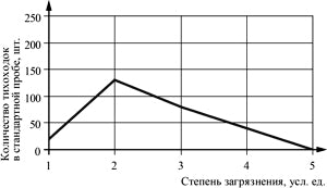 Проанализируйте график зависимости количества тихоходок в пробах мхов из зон с разной степенью загрязнения среды. (Тихоходки – тип микроскопических беспозвоночных, близких членистоногим.) Степень загрязнения окружающей среды определялась в условных единицах: 0 – отсутствие загрязнения; 5 – максимальное загрязнение.
