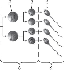 Установите соответствие между характеристиками и типами клеток в сперматогенезе, обозначенными на схеме выше цифрами 1, 2, 3: к каждой позиции, данной в первом столбце, подберите соответствующую позицию из второго столбца.