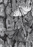 Сравните рисунки А и Б с изображением бабочек берёзовых пядениц, сделанные с интервалом в несколько лет на одном и том же растении. Заполните пустые ячейки таблицы, используя элементы, приведённые в списке. Для каждой ячейки, обозначенной буквой, выберите соответствующий элемент из предложенного списка.