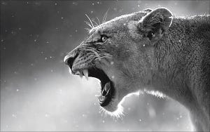 На фотографии отображена агрессивная реакция дикого животного.