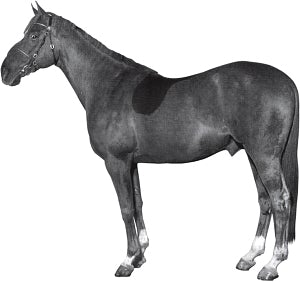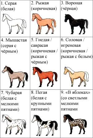 Самые распространённые масти – рыжая или коричневая, гнедая с белыми отметинами. Шея длинная прямая. Профиль головы прямой длинный. Задние конечности прямые, вертикально поставленные.