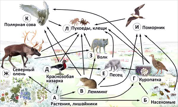 Изучите фрагмент экосистемы тундры, представленный на схеме, и выполните задания 19–21.