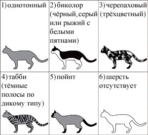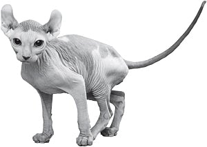 Рассмотрите фотографию лысой кошки. Выберите характеристики, соответствующие внешнему строению кошки, по следующему плану: окрас шерсти, форма ушей, форма головы, форма глаз.