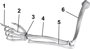 На рисунке изображено строение скелета руки человека. Выберите три верно обозначенные подписи к рисунку.