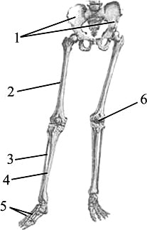 На рисунке изображено строение скелета ног человека. Выберите три верно обозначенные подписи к рисунку.