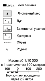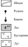 Определите расстояние от родника до башни на местности в метрах с помощью масштаба карты. Для выполнения задания используйте линейку. Измерения проводите между центрами точек.
