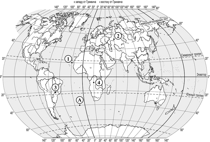 Задания 1–2 выполняются с использованием приведённой ниже карты мира.