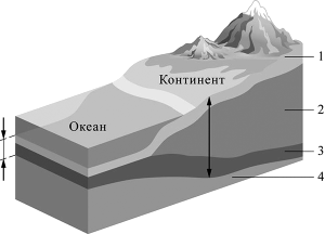 Определите, какой цифрой на схеме строения земной коры обозначен гранитный слой.