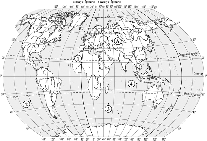 Задания 1–2 выполняются с использованием приведённой ниже карты мира.