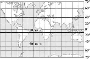 1) 40° с.ш. 2) 10° ю.ш. 3) 50° ю.ш.