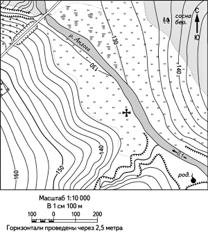 Определите расстояние от церкви до родника на местности в метрах с помощью масштаба карты. Для выполнения задания используйте линейку. Измерения проводите между центрами точек.
