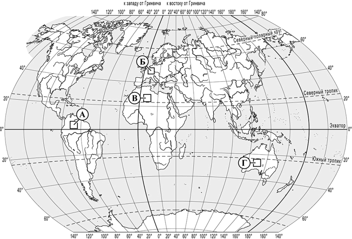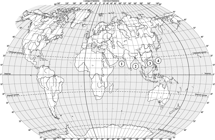 Задания 1 и 2 выполняются с использованием приведённой ниже карты мира.