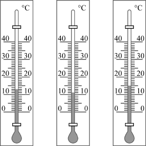 Ниже приведены изображения термометра, при помощи которого велись наблюдения за изменением температуры воздуха в течение суток. Сравните показания термометра в разное время дня.