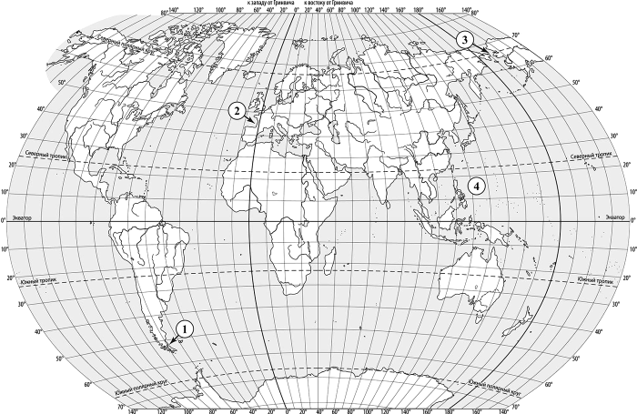Задания 1 и 2 выполняются с использованием приведённой ниже карты мира.