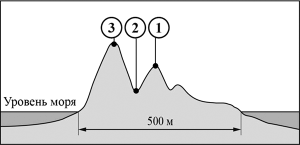 На острове в пунктах, обозначенных на рисунке цифрами 1, 2 и 3, были одновременно проведены измерения температуры воздуха. Расположите эти пункты в порядке повышения в них температуры, начиная с пункта, в котором температура была самой низкой. Запишите в ответе получившуюся последовательность цифр.