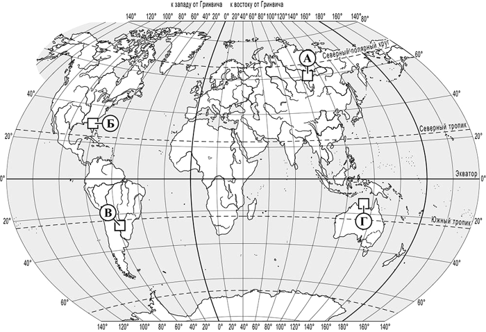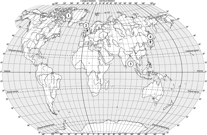 Задания 1 и 2 выполняются с использованием приведённой ниже карты мира.