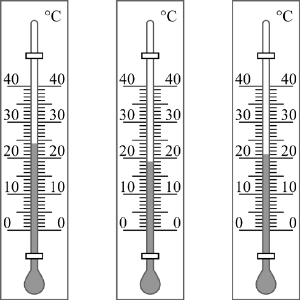 Ниже приведены изображения термометра, при помощи которого велись наблюдения за изменением температуры воздуха в течение суток. Сравните показания термометра в разное время дня.