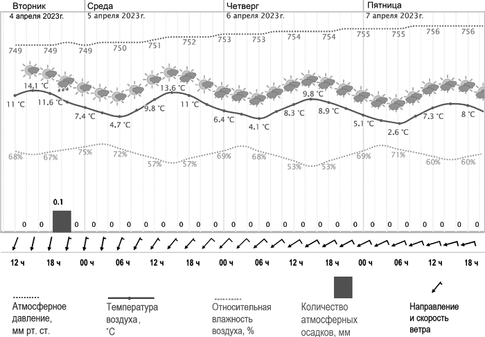 Определите суточную амплитуду температуры воздуха в четверг 6 апреля 2023 г.