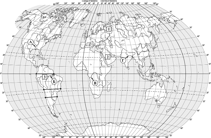 Задания 1–3 выполняются с использованием приведённой ниже карты мира.