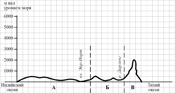 На уроке географии Семён построил профиль рельефа Австралии, представленный на рисунке. По какому из отрезков, проведённых на карте вдоль трёх параллелей, пересекающих материк Австралия, построен профиль рельефа, представленный на рисунке? Укажите в ответе эту параллель.