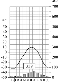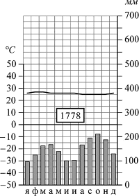Выберите первую из приведённых выше климатограмм. Заполните таблицу климатических показателей, используя данные соответствующей климатограммы.